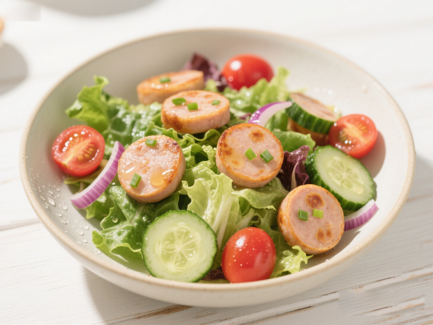 特點(diǎn):相對(duì)輕盈的選擇,低溫慢煎的香腸保留更多汁水,搭配新鮮蔬菜和清爽醬汁,營養(yǎng)均衡不油膩。