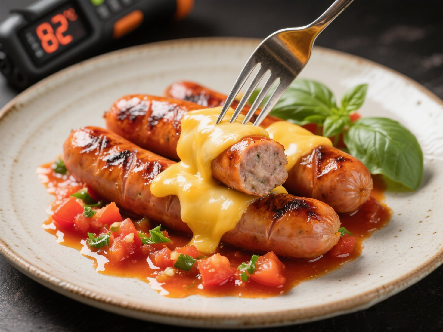 ③ 香腸裝盤(pán) → 淋莎莎醬 → 撒帕瑪森碎
