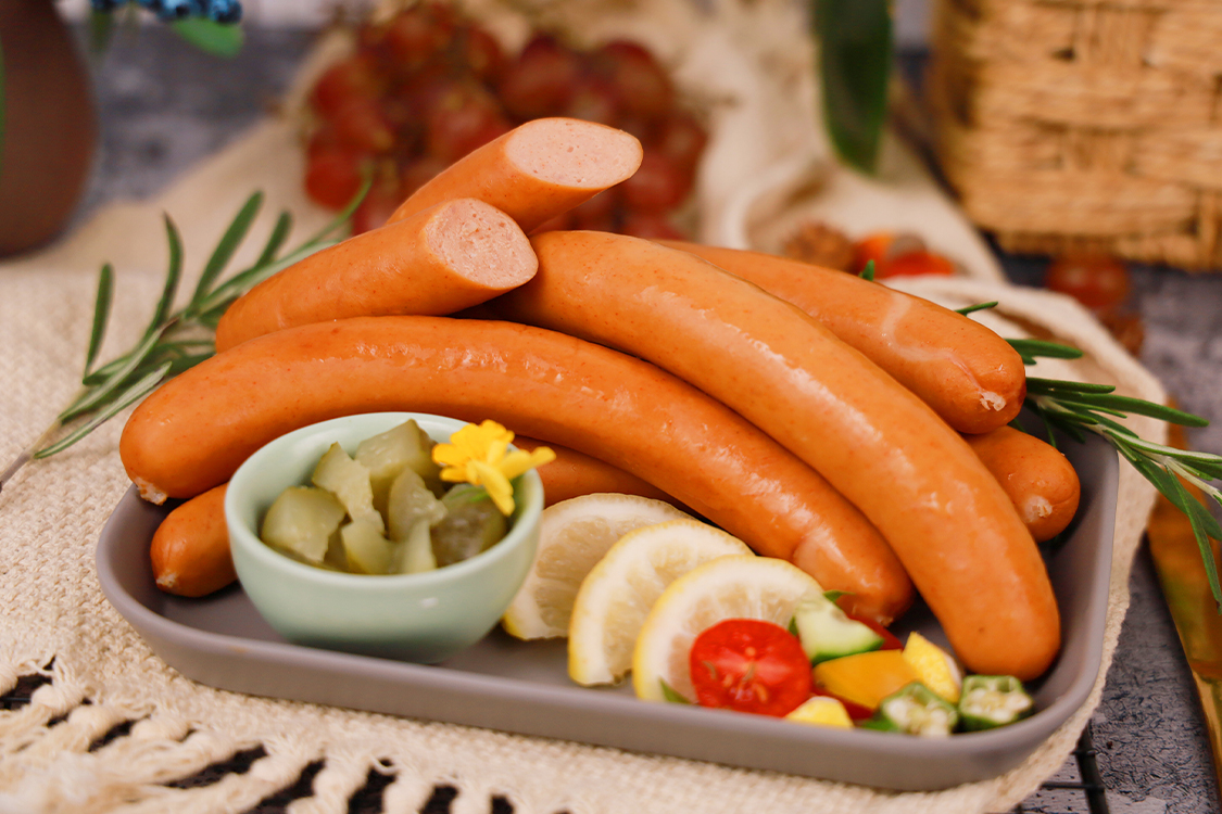 主要配料:豬肉、水、大豆蛋白、淀粉、食用鹽、香辛料、天然腸衣、食品添加劑等
