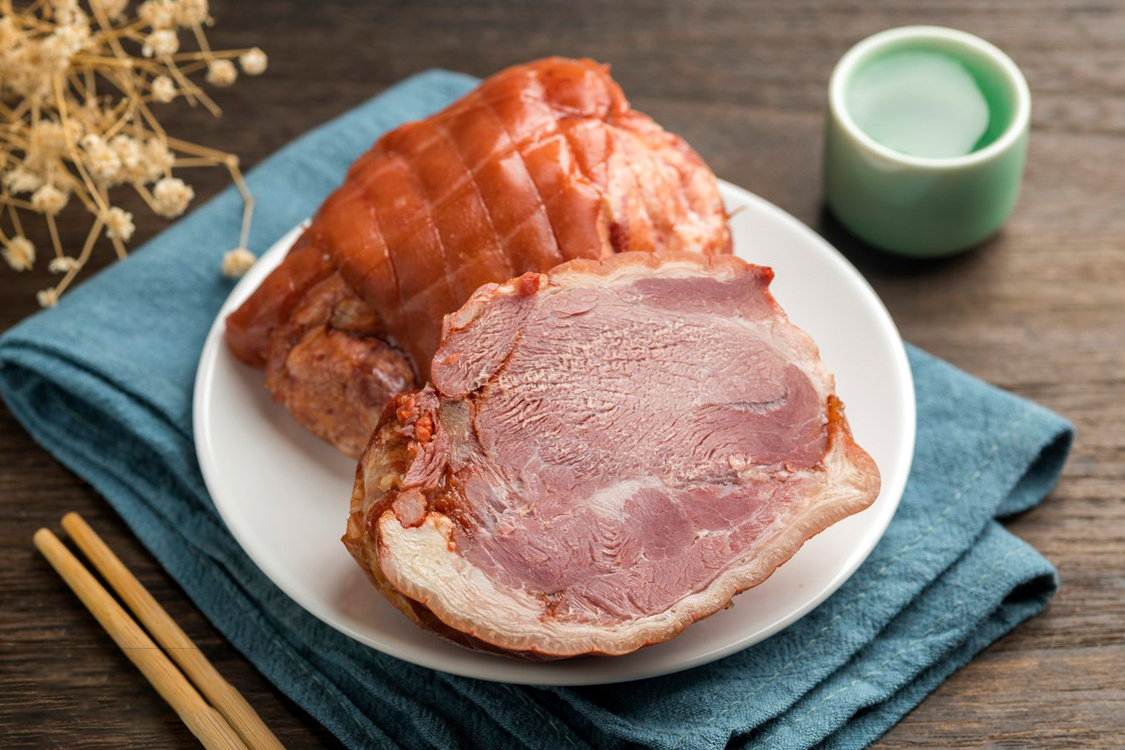 ① 復(fù)熱: 將整個豬肘放入蒸鍋中,用小火慢蒸15-20分鐘,直至豬肘完全熱透,用筷子可輕松插入。此步驟能使豬肘更加酥爛,并恢復(fù)剛出鍋時的潤澤感;